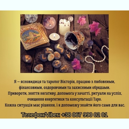 Шукаєте допомогу ясновидиці, екстрасенса, рунолога і таролога? Мене звати Вікторія, і я працюю з людьми, допомагаючи змінювати їхню долю за допомогою стародавніх знань, ритуалів і магії.